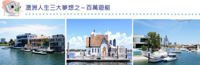 3. 有价景点三~此行程特将一般市场上颇受好评的自费活动:百万豪华游艇(澳币AUD$:90.约420人民币)之旅安排于行程之内:并安排超浪漫水上教堂旅游景点,南半球烛一无二神秘水上教堂,此水上教堂是各国人士最向往的结婚胜地,游客可入内参访水上教堂特殊典雅布置及体验独特的水上真爱之旅